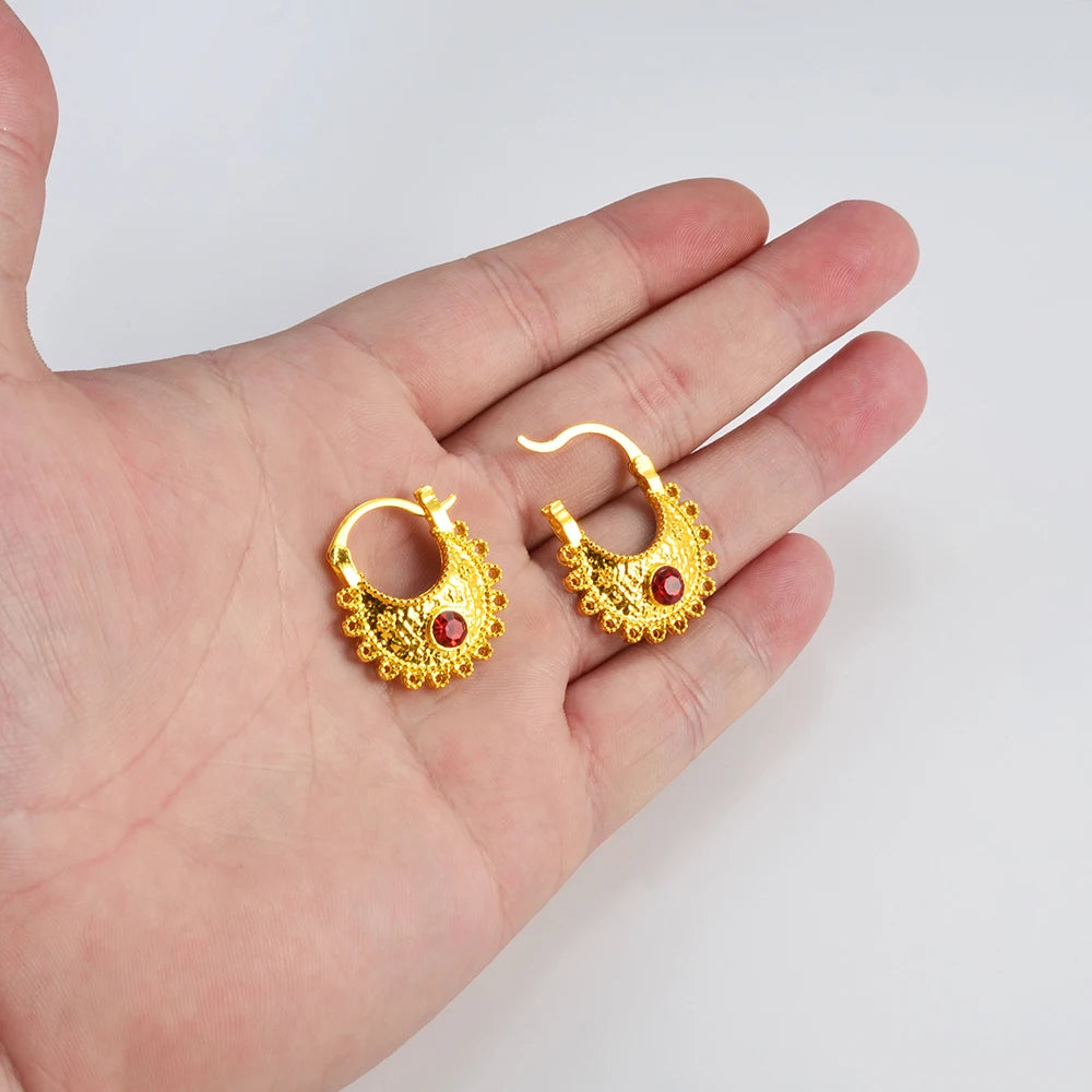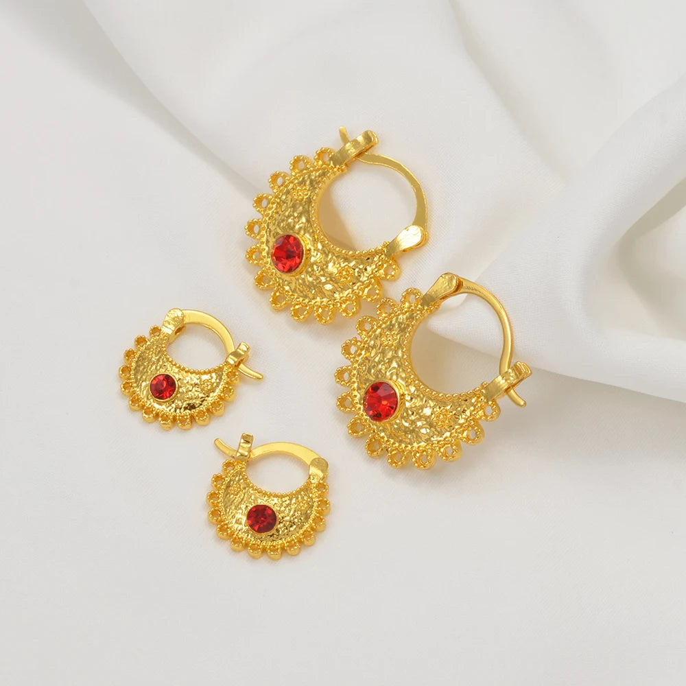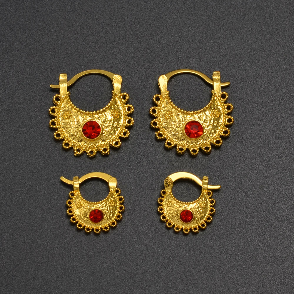 Anniyo 2.2CM/1.5CM Small Stud Earrings With Rhinestone Ethiopian Eritrean African Jewelry Women Girls #160916