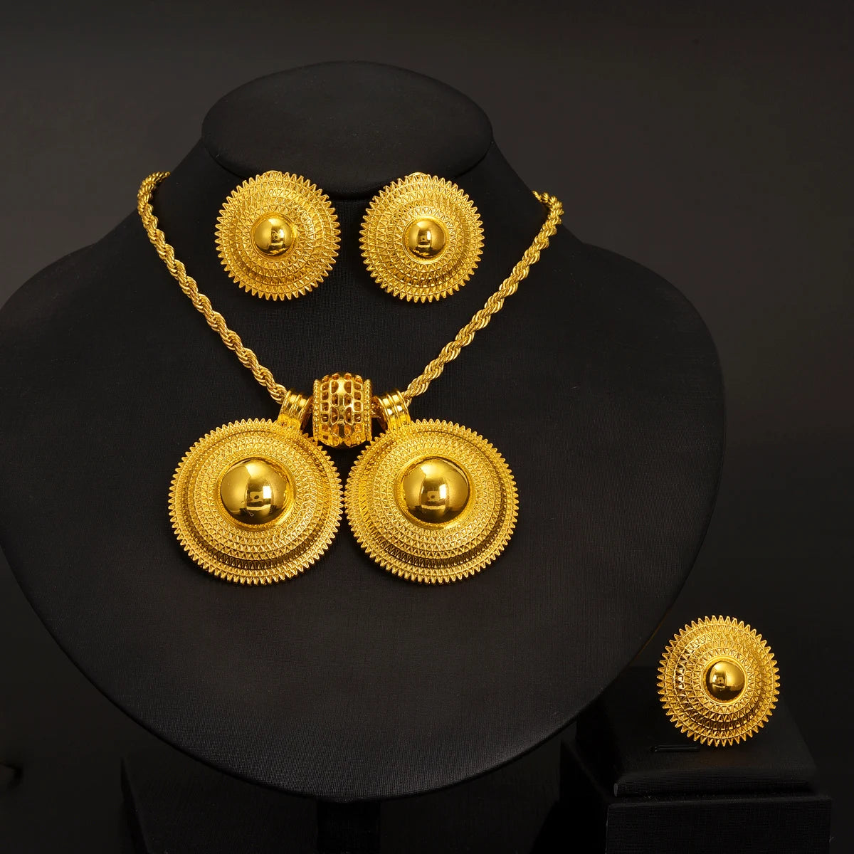 ✨Experience the timeless elegance of Ethiopian classic jewellery with this stunning 3-piece set, featuring a pendant, earrings, and a ring. Each piece showcases intricate Ethiopian and Eritrean-inspired designs that reflect rich cultural heritage and craftsmanship.