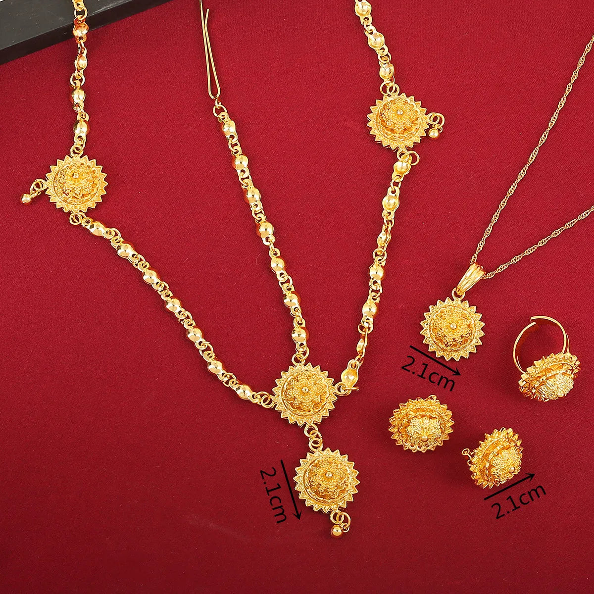 The intricate designs are inspired by ancient Ethiopian and Eritrean artistry, showcasing patterns that have been passed down for generations. Lightweight yet bold, the sets include necklaces, earrings, and bracelets that complement traditional Habesha Kemis attire.